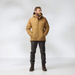 Χειμερινό μπουφάν με ελαφριά επένδυση μέχρι τους γοφούς σε χρώμα G-1000 με σταθερή ρυθμιζόμενη κουκούλα. Ένα τέλειο ένδυμα για εξωτερικούς χώρους για τους πιο κρύους μήνες του χρόνου, αντιστέκεται στον αέρα και παραμένει στεγνό κατά τη διάρκεια σύντομων ντους, ενώ παράλληλα αερίζει την υγρασία του σώματος που συσσωρεύεται όταν είστε δραστήριοι. Η συνθετική επένδυση PrimaLoft® Black Insulation RISE με τεχνολογία PURE προσφέρει επιπλέον ζεστασιά, ακόμη και σε υγρές συνθήκες, και το μπουφάν είναι εύκολο στη μετακίνηση, με ή χωρίς σακίδιο πλάτης. Τα μανίκια είναι προδιαμορφωμένα και οι μανσέτες ρυθμίζονται με velcro. Το φερμουάρ είναι διπλής κατεύθυνσης, καλύπτεται με προστατευτικό πτερύγιο με κουμπιά στο πηγούνι, το στήθος και το στρίφωμα. Πρακτική αποθήκευση σε πολλές τσέπες: δύο κάθετες τσέπες στο στήθος και δύο στα πλάγια – όλες με φερμουάρ που έχουν υπερμεγέθη εξολκέα, ώστε να μπορούν να ανοίγουν και να κλείνουν εύκολα με γάντια. Επιπλέον, υπάρχουν δύο ευρύχωρες τσέπες από πλέγμα στο εσωτερικό, ιδανικές για την αποθήκευση γαντιών ή καπέλου. Ένα κορδόνι που σφίγγει μπορεί να χρησιμοποιηθεί για τη ρύθμιση του στριφώματος.